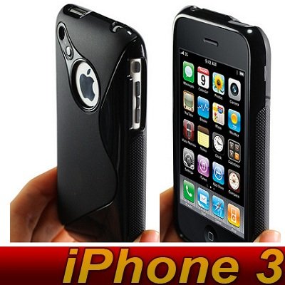 AEVI24 Apple iPhone 3G / 3GS Designer Schutzhülle Silikon TPU Hülle Etui Tasche Case Hard Cover S S-Line Schwarz-Schwarz Black TOP