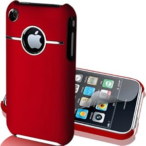 Apple iPhone 3G 3Gs 3 3s Harte Rückseite Schutzhülle in Rot aus Baumharz mit Aluminium Silberfarbig Chrom Drahtziehen Optik für iPhone3 3g | elegant Schutzhülle | Glänzend Tasche | Metallisch Case, PLUS Mit Displayschutzfolie und Reinigungstuch Inklusive